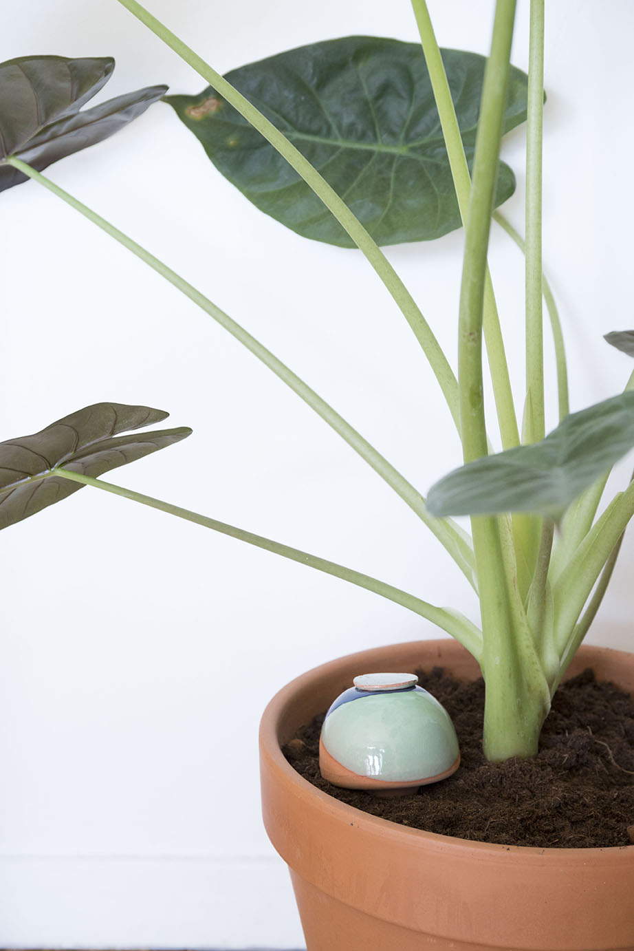 Contrairement au système de goutte à goutte précédent, ici l’arrosage se fait en profondeur dans le terreau. Ainsi par capillarité ta plante sera arrosée petit à petit pendant quelques jours. Je te conseille de choisir la taille de la bulle en verre en fonction de la taille de ta plante et de ses besoins en eau. Car il s’agit d’une alternative à l’arrosage pour un temps limité seulement.